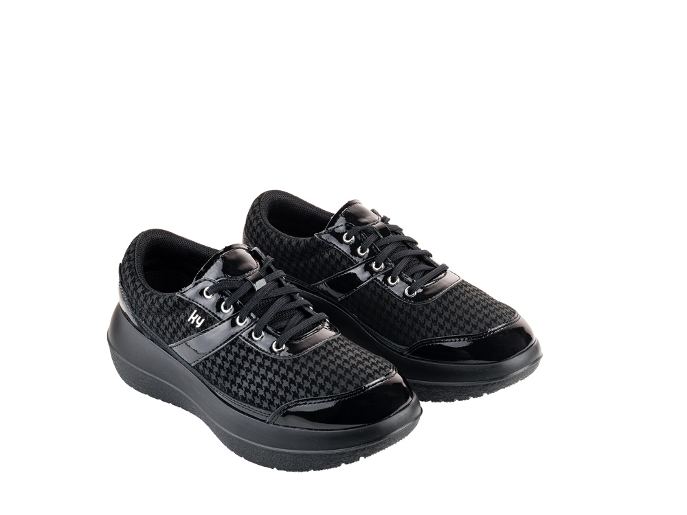 Das modische «Hahnentritt-Muster» in Kombination mit dem Lack-Leder macht das Modell Aubonne Black Poule zu einem sehr eleganten Schuh. In seiner modischen Art lässt er sich perfekt zu vielen Kleidungsstilen kombinieren. Ein stilbewusster Begleiter für Ihren Alltag.
