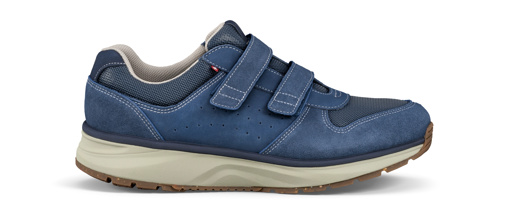 Glatter Sneaker aus einer Kombination von Nubukleder, Veloursleder und Nylonmesh mit doppeltem Klettverschluss für einen einfachen Einstieg und präzise Anpassungsmöglichkeiten. Er verfügt über einen weich gepolsterten Kragen und Zunge. Ausgestattet mit der Joya Active Sohlentechnologie, die eine ideale Kombination aus Dämpfung, Rebound und Stabilität garantiert. Für dynamische Menschen, die immer in Bewegung sind und Komfort in Aktion und Leistung auf jedem Untergrund brauchen.