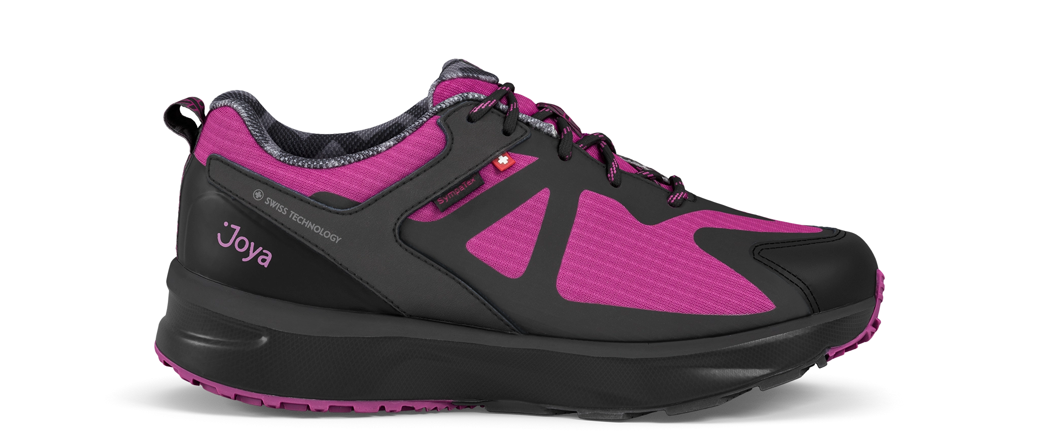 Pinker Sneaker aus Ripstop-Nylon-Mesh mit sanft gepolsterter Zunge und Kragen für maximalen Komfort. Ausgestattet mit einer atmungsaktiven Sympatex-Membran und wasserabweisender Konstruktion, die deine Füße warm und trocken hält. Dank der Joya Active Sohlentechnologie bietet er eine optimale Kombination aus Dämpfung, Rückfederung und Stabilität. Ideal für aktive Menschen, die ständig in Bewegung sind und auf jedem Untergrund Komfort und Leistung schätzen.